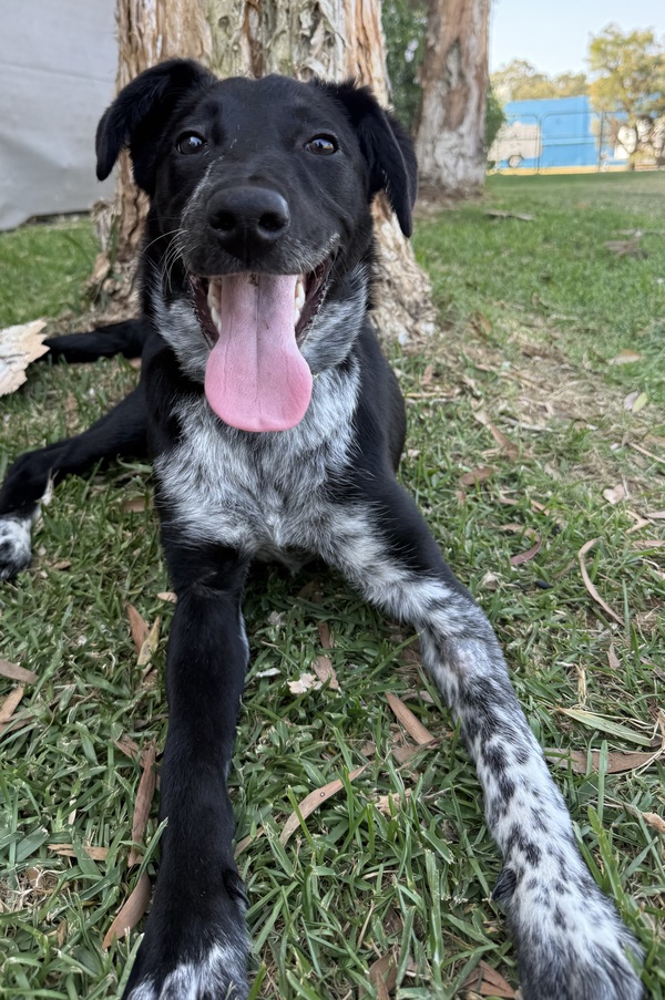 Meet Chucky - an active, playful young guy with a big heart and a lot of love to give! Chucky is best suited to an active family who will include him in daily life and take him on fun adventures. He adores people and won't hesitate to jump into your lap for pats and puppy kisses. True to his breed, Chucky is a smart boy who already knows "sit" and "down." With continued training, he'll thrive and pick up even more skills in no time. He can be a little unsure with close handling at times and may do small nervous wees, so gentle, positive interactions and plenty of tasty treats will help build his confidence. Chucky needs daily physical exercise and mental enrichment - he'll love working for his meals using puzzle toys like Kongs, snuffle mats, milk bottles, or egg cartons. He is still learning to walk on a loose lead and tends to weave between your legs, so ongoing lead training will be important. Chucky is open to finding the right family - we recommend children come in to meet him at adoption time.