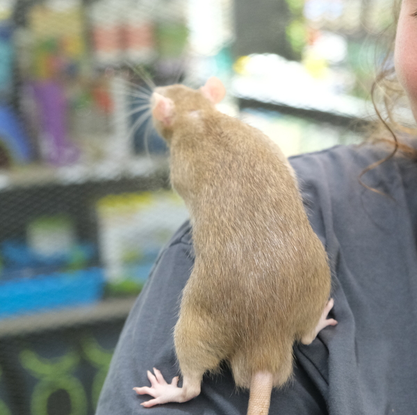This rat is looking for a home to call his own. Friendly, intelligent, and full of personality, rats make wonderful companions when given the time and care they deserve. They're social animals who thrive on interaction - both with humans and other rats - so he'll do best in a home with at least one other rat for company.