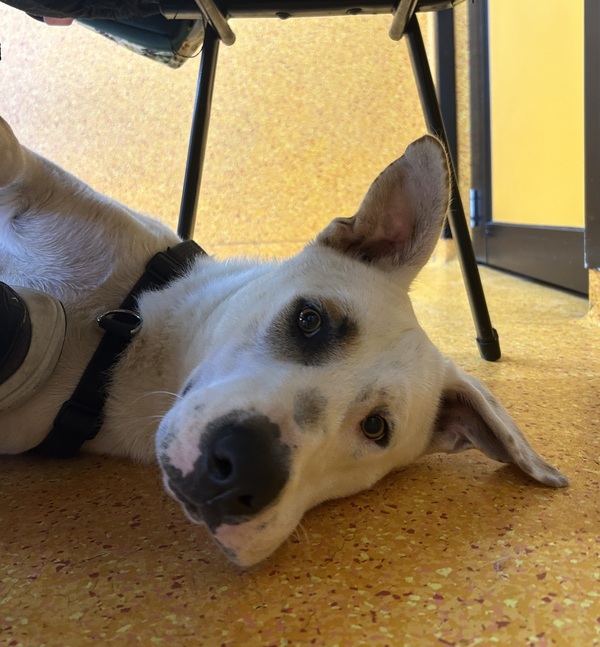 Cookie is a goofy, cheeky boy who loves being with his humans and spending quality time together. He is deaf and will need continued training to help him learn his manners, so he'll do best with a family ready to support him and work on these skills.