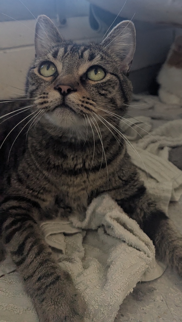 Gideon has previously lived with other cats and was surrendered alongside his feline friend, Olive, so he may do well in a home with other friendly cats. He'll also appreciate having cozy retreat spots available-such as igloos, cat trees, or tunnels-where he can relax when feeling overwhelmed.