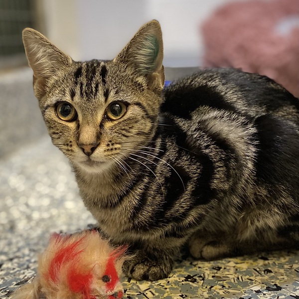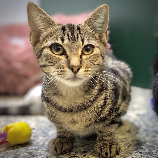 Little Candy has come to the Shelter to find a loving home. She has beautiful soft, gold eyes and a very gentle nature. Candy has a sweet 'wallflower' personality where she likes to check things out before she becomes involved. When she has become comfortable with you, she will respond with lots of purrs and cuddles. Candy has a short-length coat in warm brown tabby colours. We suggest the following care:-