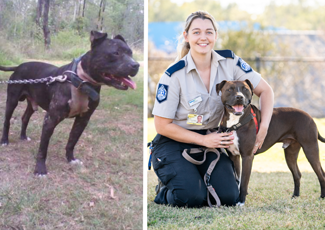 A 50-year-old man was sentenced to six months’ imprisonment to serve three months in relation to dogfighting. Above is Pip, one of the dogs rescued who was successfully rehabilitated and rehomed by the RSPCA.