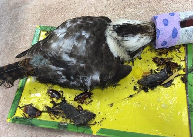A kookaburra caught in a pest control glue trap which sadly could not be saved due to injuries caused by the trap (below).