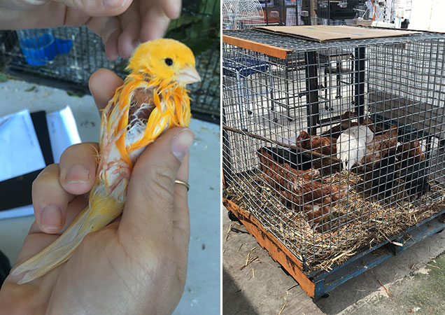 Two separate pet stores had animals for sale living in filthy or inappropriate conditions and with untreated medical conditions.
