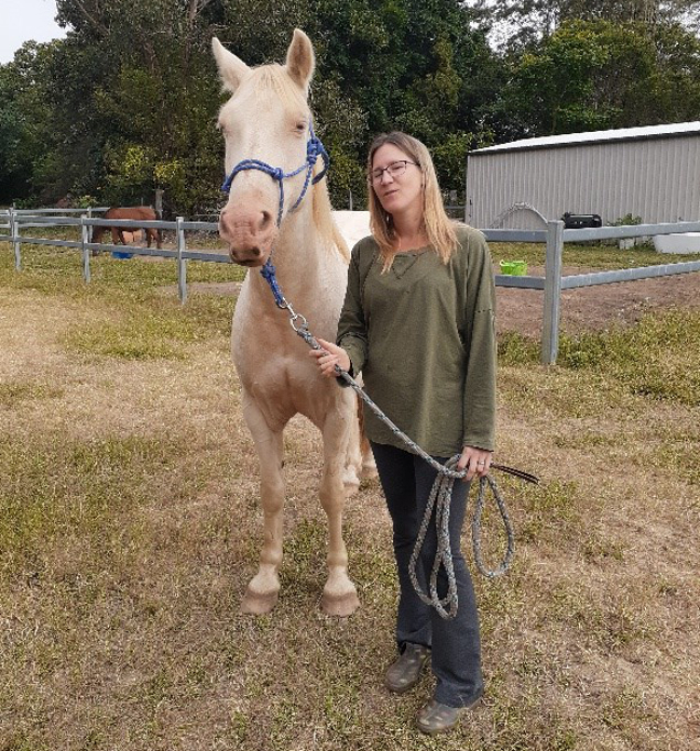 Kim spotted Oolgie on the RSPCA adoption page. Kim has experience with rescue horses and helping them come out of their shell so he offered up his time to help Oolgie become more comfortable and well trained. For months he visited Karen’s foster home to build trust with Oolgie. Then it was time for Kim to introduce Oolgie to his partner, Sharron.