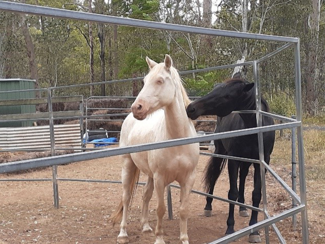 Once he arrived at his new home, Oolgie met his new paddock buddy – Rev, a rescue stock-horse with only one eye. He was very excited to see Oolgie!