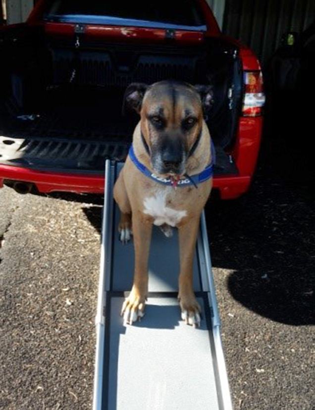 Smooch is certainly spoiled rotten, not only by his grandparents but by Mum Elesia who got him his own ramp so that he could reach the back tray of her ute without having to grip the slippery plastic.