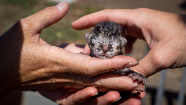 Tiny mews drew her to hear the tiny newborns down a drain near her house.