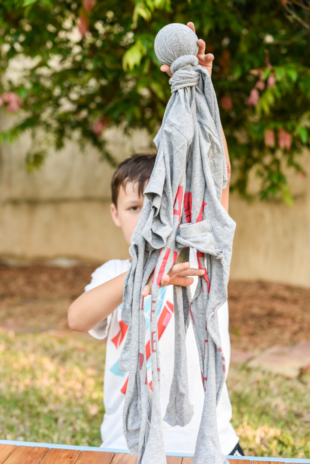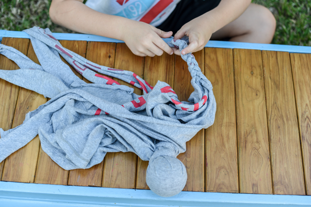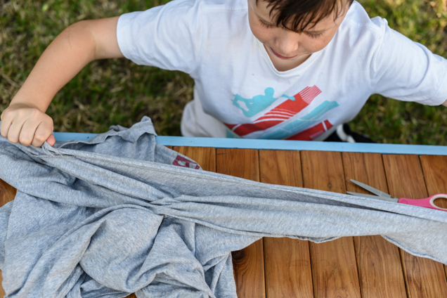 1. Cut T-shirt into multiple strands.
