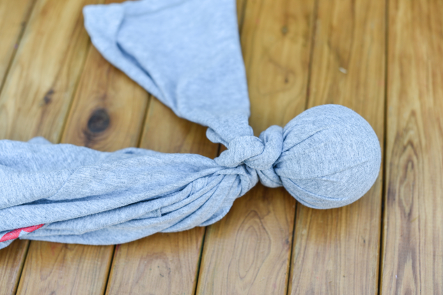 3. Tie off the end of the braids with excess strands of T-shirts.