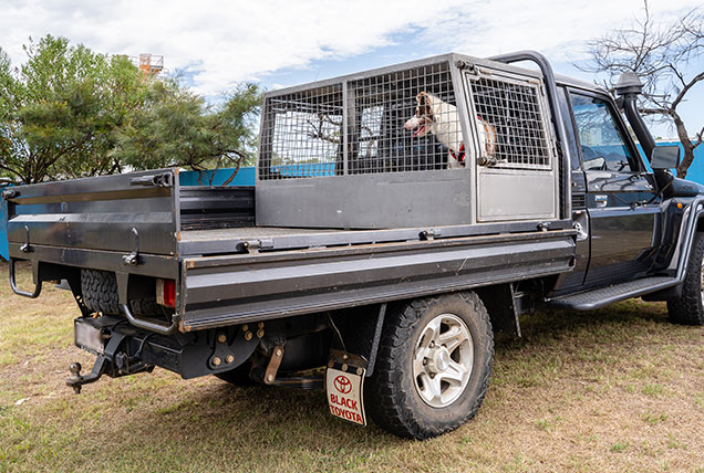 Queensland weather can be dangerously hot. Dogs are susceptible to heat stress and need to be protected from the elements. Ensure any metal floors are covered so that your dog has a safe place to stand. Paws can easily get burnt and dogs can suffer from painful heat blisters on their sensitive pads. Provide water when taking long journeys to help your dog stay hydrated and cool down when it’s hot. Extra shelter is required when travelling in dusty conditions as dust particles can harm dogs’ eyes, ears, nose and lungs. Don’t let your dog bark at or harass pedestrians or other animals from the tray. Not only is this bad manners, it can also cause your dog to become highly distressed and anxious.