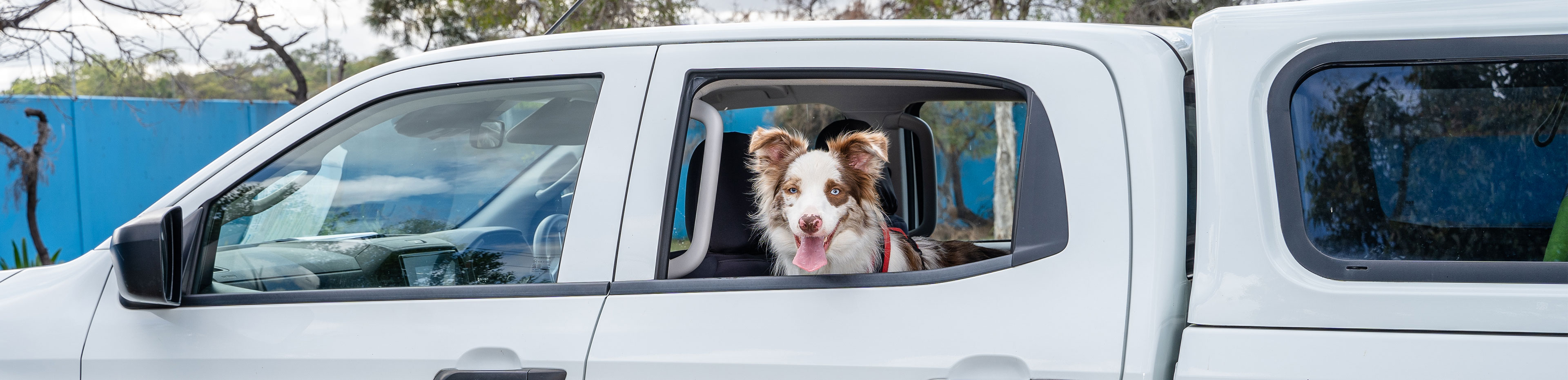 It is really important to ensure the tether is not long enough for the dog to reach the side of the ute and potentially fall out of the vehicle. Don’t use choker chains - if you need to break suddenly your dog could be strangled. Make sure the tether is the right length so it enables your dog the ability to comfortably sit down and move freely.