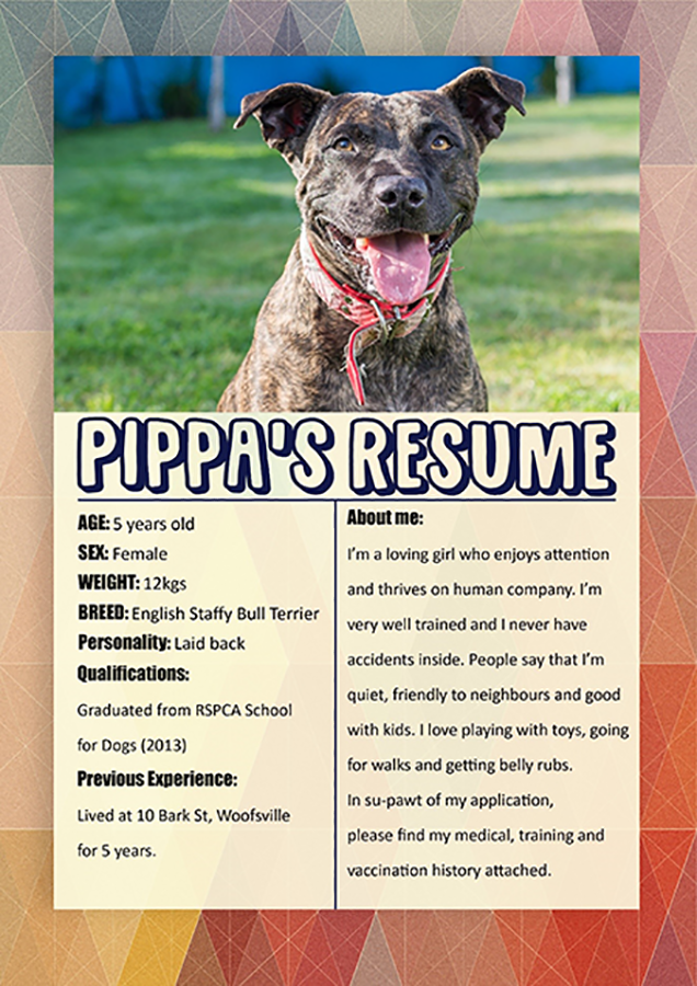 - Write a pet resume: list your pet’s likes, dislikes and personality traits, certificates of vaccination, desexing and training.