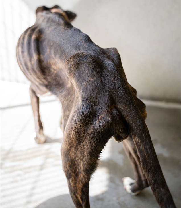 Veterinary examination highlighted what was expected, Happy was severely emaciated. She had lost nearly all of her muscle on her pelvis and back legs.