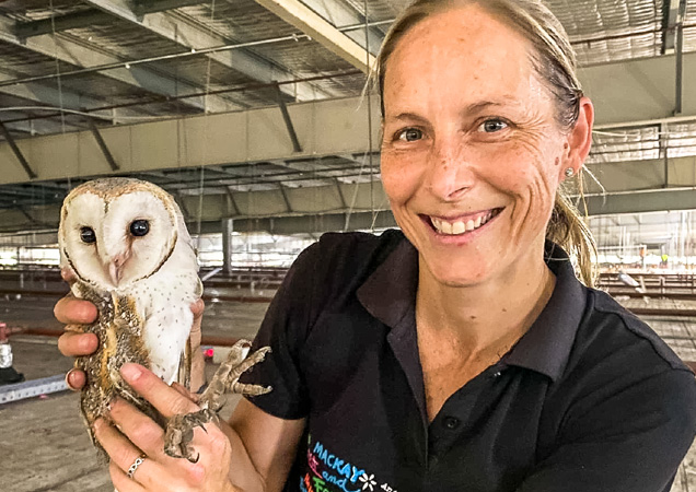 A barn owl was trapped for two nights in a Riverview factory. Despite what the workers did, the owl just could not figure out how to get out. Our RSPCA Rescue Officer Jared was on hand with a netgun, but it ended up being one of the workers that caught the owl with the net! Well done! With a quick trip to the RSPCA Wildlife Hospital for a vet check, the owl was in good health and released.