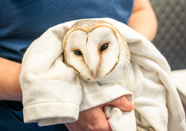 Tip: If you see an owl or any bird trapped in a building, try luring them to the floor with food. Sometimes they figure out how to get out the open door by themselves. If they stay up high which is their instinct, they never find the door.