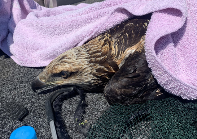 In another baby bird rescue, a white bellied sea eagle had fallen out of the nest at Wyaralong dam. It hit the water, swam its way onto a tree branch, and Rescue Officer Jared and a member of the public with a boat set out to rescue the eagle. The parents were not around, and the young eagle was brought into the Wildlife Hospital. This poor bird had water in his lungs and stayed in veterinary care until he was well enough to travel to Currumbin Wildlife Sanctuary for rehabilitation and eventual release.