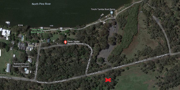 The dog was located on Wyampa Road, Bald Hills in bushland across from the boat ramp entrance.